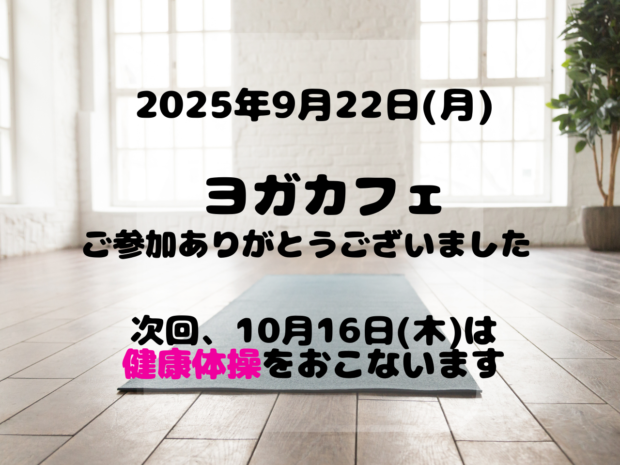 2025年9月22日(月)の「ヨガカフェ」終了しました🧘♂️