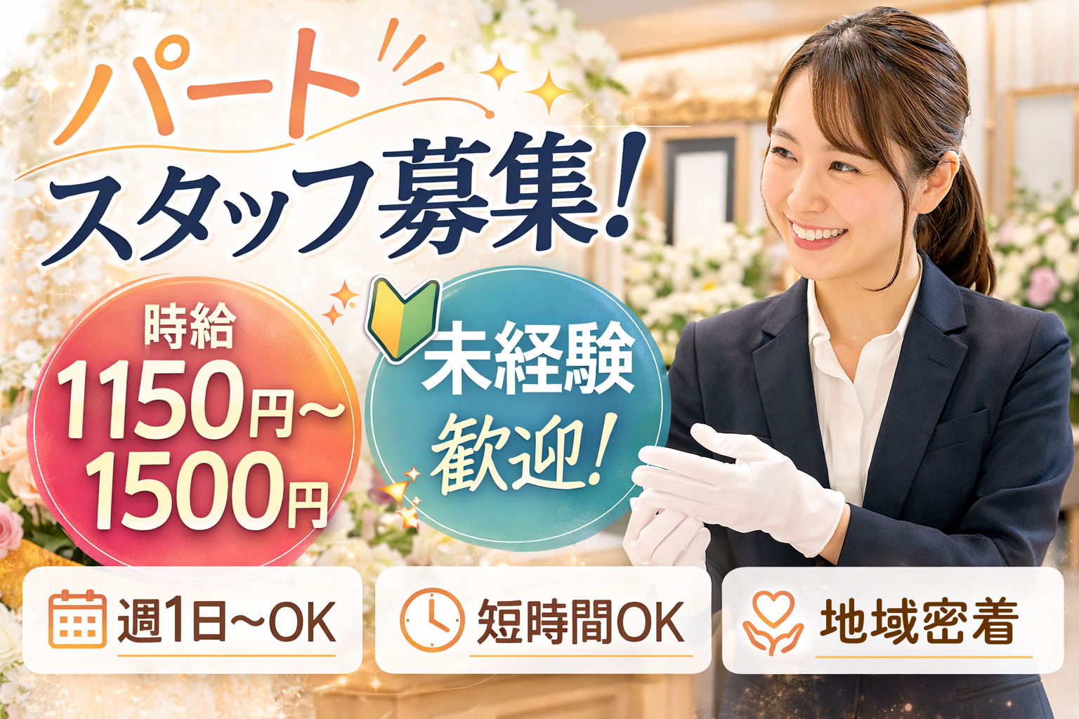 大阪屋葬祭では葬儀会場のサポートスタッフを募集しています。