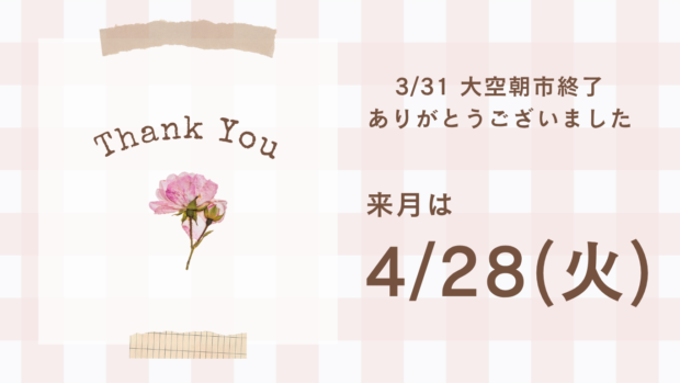 来月は、4月28日(火)です。野菜・たまご・お花を全品100円でご用意いたします。