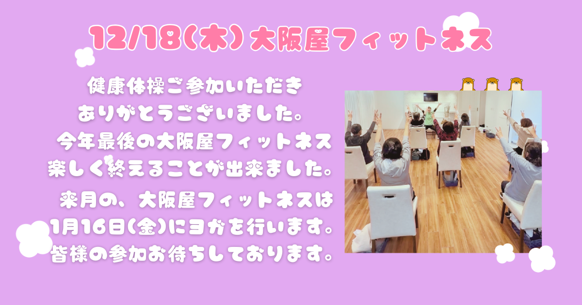 皆さまのおかげで、今年最後の大阪屋フィットネスも