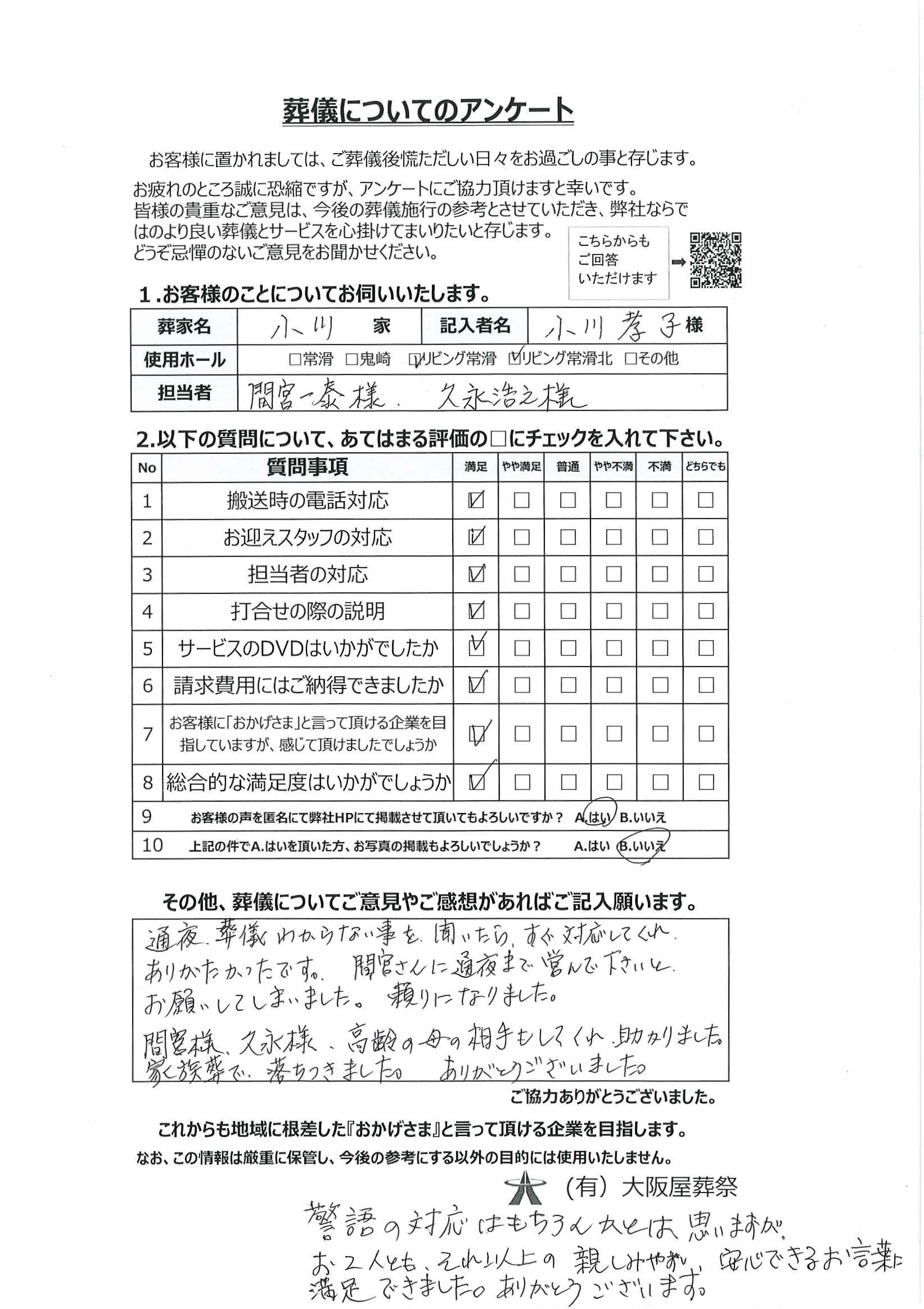 通夜、葬儀わからないことを聞いたら、すぐ対応してくれ、ありがたかったです。