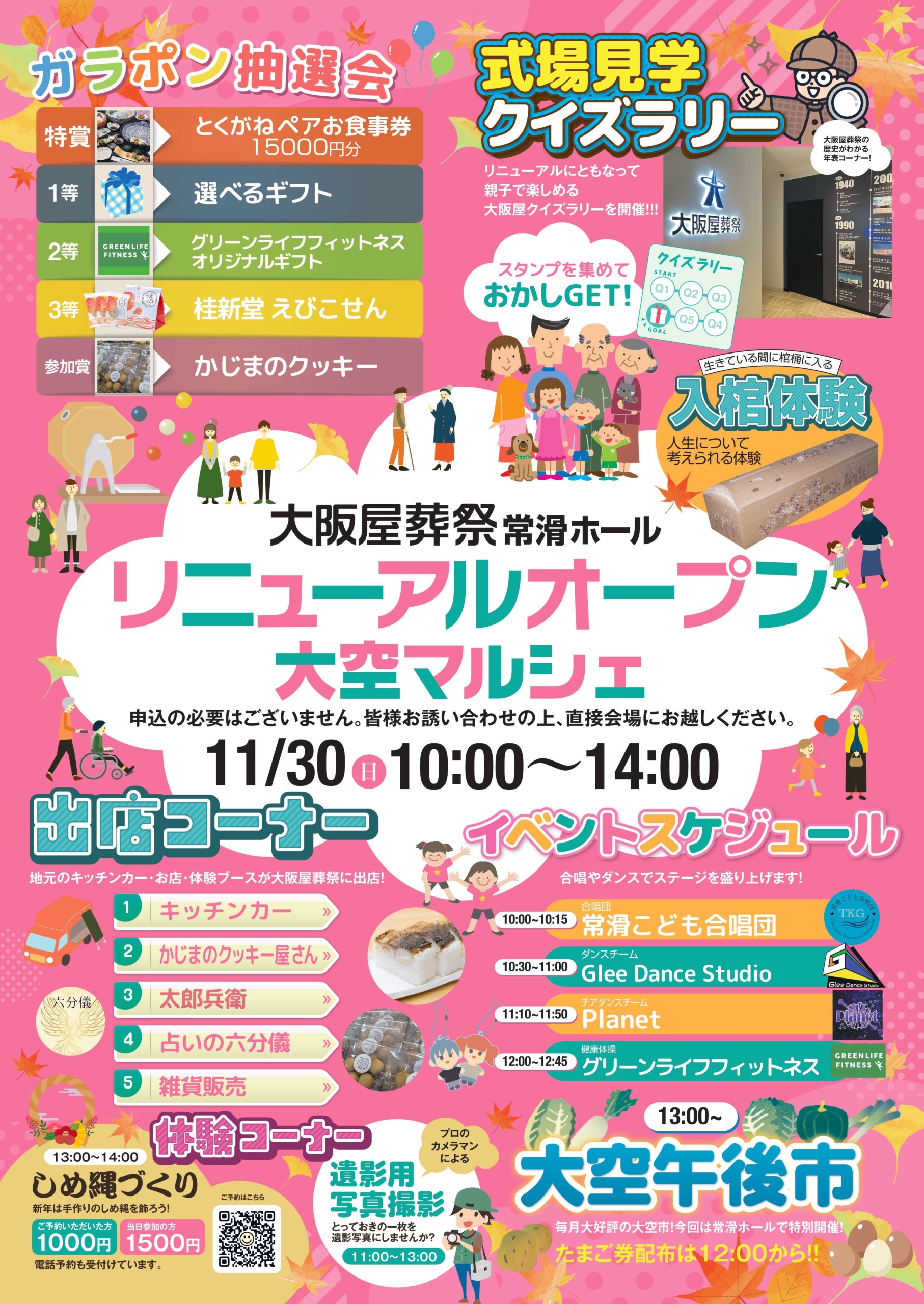 平成30年: 常滑ホールの目の前に「大阪屋リビング常滑」を開設し、自宅のリビングから送り出す形を実現。