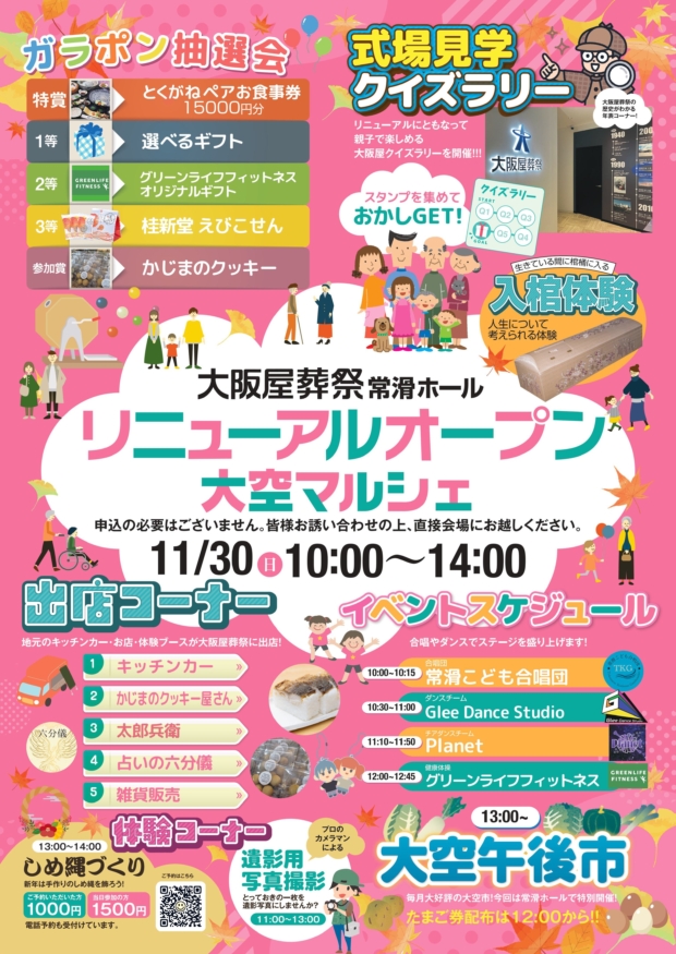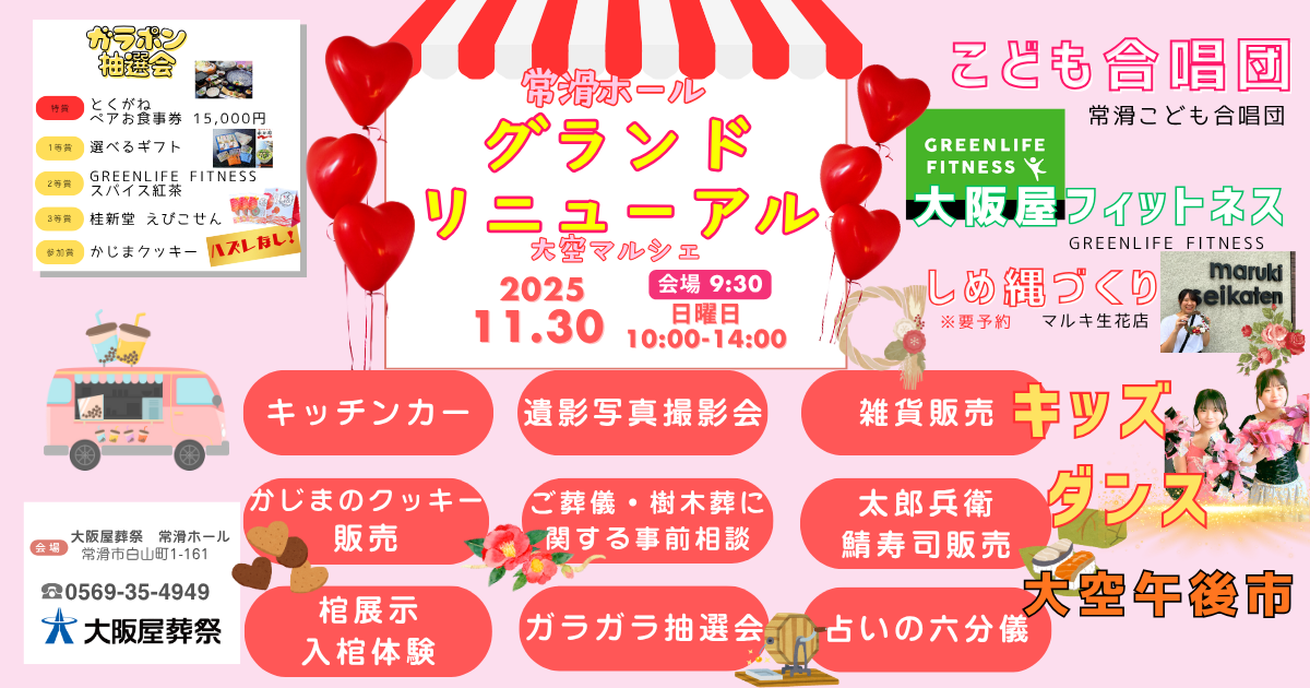そして、11月30日(日)には、常滑ホール・リニューアルオープンイベントを開催いたします。